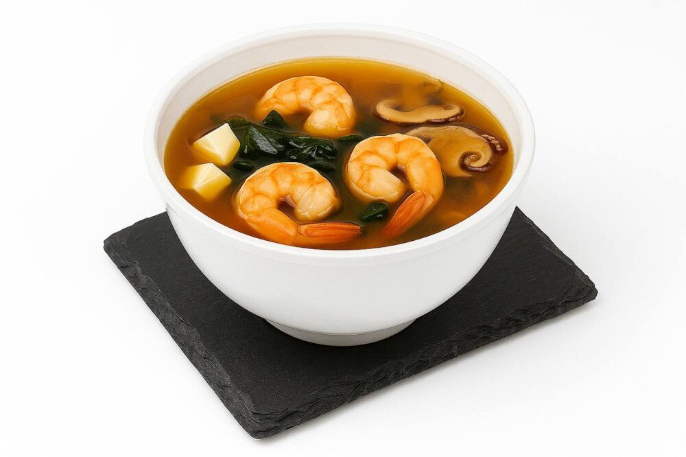 Грибы шиитаке, паста мисо, водоросли вакаме, тофу, тигровые крикетки