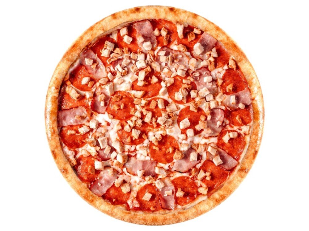 Томатный соус, моцарелла, бекон, пепперони, куриное филе
