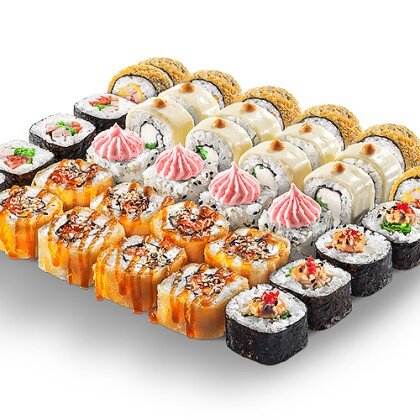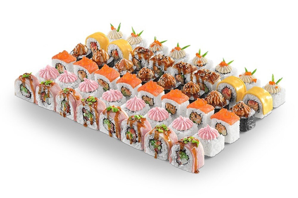 1)Сыр,помидор,огурец,зелёный лук,кунжут.Бекон,Терияки.2)лосось,краб, огурец,сыр, соус Икорный.3)Филка с икрои крабом.4)Угорь,краб,сыр,огурец.Унаги(4шт).5) Томаго,такуан.Крем-брюле.6)Курица,кранч.Чесн.Соус.7)Краб,кранч,огурец.Сыр hohland ломтик.4шт