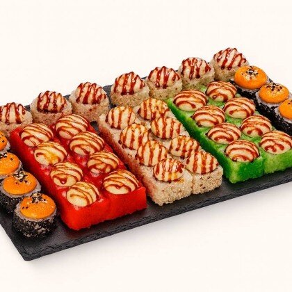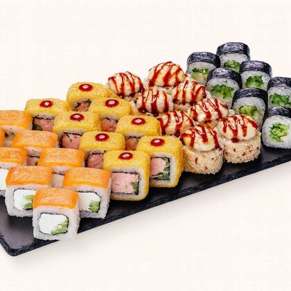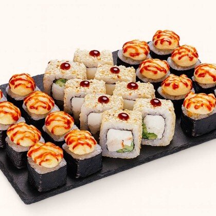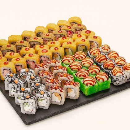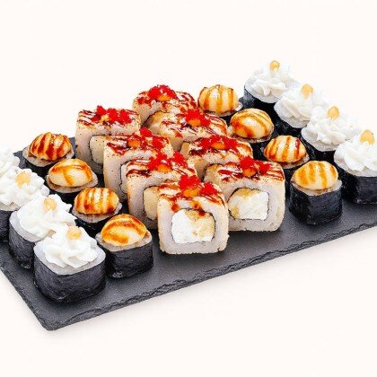1-Филадельфия Лайт 2-Калифорния Лайт. (сыр-кларий. белый кунжут. запеченный соус и унаги) 3-Сыр,темпурная креветка,огурец. Масаго