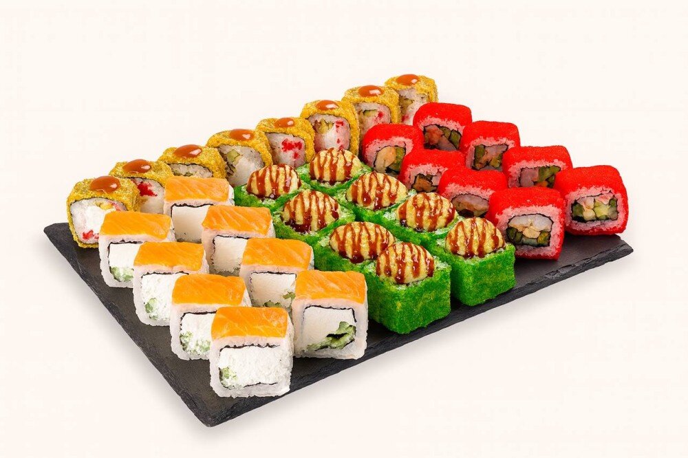 1-Филадельфия Лайт 2-Калифорния с креветкой 3-Запеченный с курицей и помидором. Масаго и унаги соус 4-Жаренный Кани Маки. Сыр,масаго,огурец. Полит соусом Чили