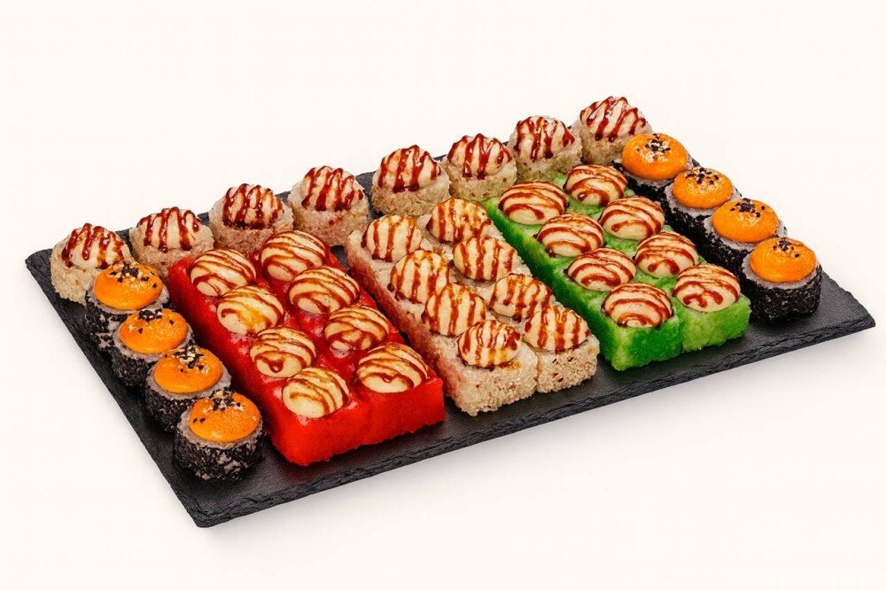 2-Сыр,лосось и огурец.Масаго,соус для запекания и унаги