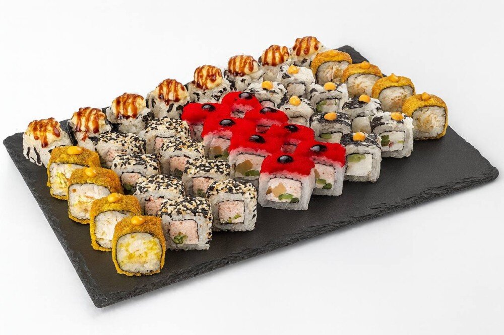 2-Краб,томаго и огурец.Шапочка масаги и унаги соус