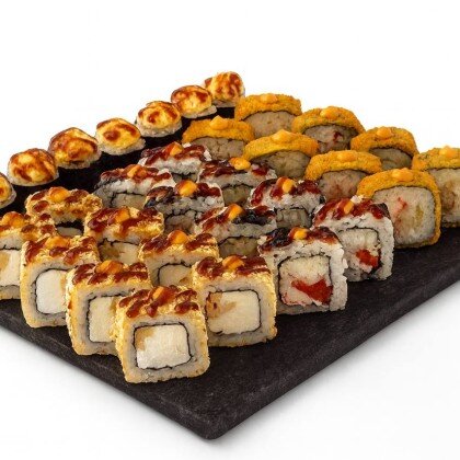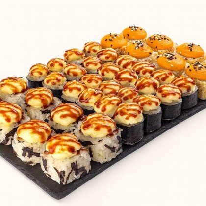 5-Запечённый мини ролл с томаго и помидором.Соус для запекания и унаги