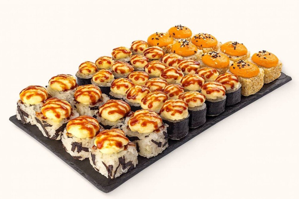 2-Запечённый мини-ролл с крабом и помидором. Соус для запекания и Унаги соус
