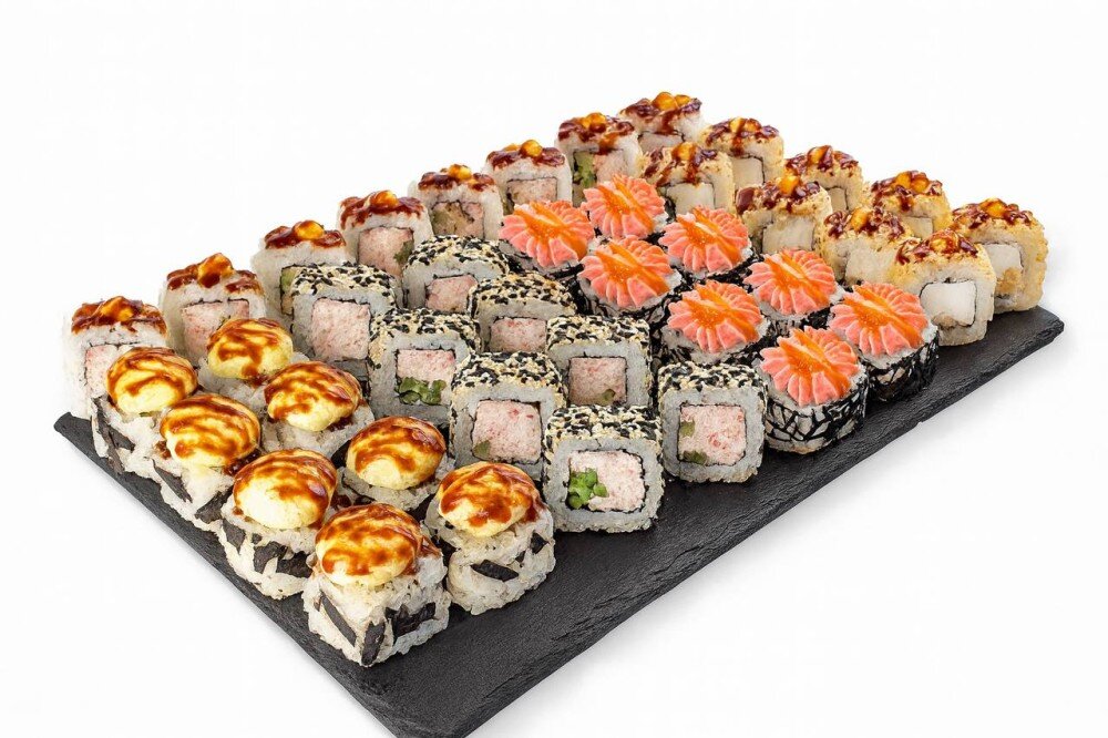 1-Запечённый с Томаго и помидором. Соус для запекания и Унаги соус.