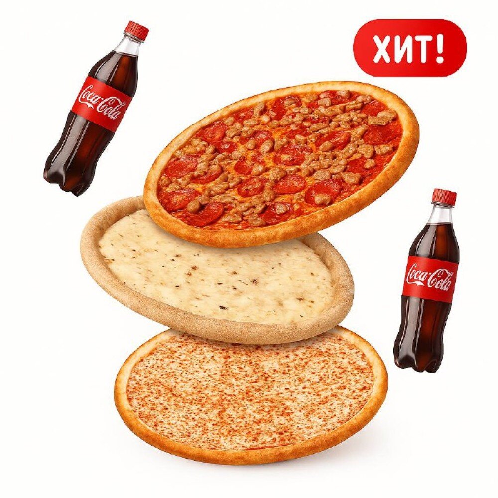 Маргарита 32см, Помодоро 32см, 4 сыра 32см + Газированный напиток 0,5 2шт
