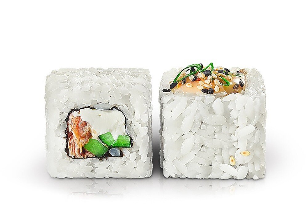 Жаренный Атлантический лосось,свежий огурчик,зеленый лук и сыр-это идеальная начинка.Поливаем сладким Чили и посыпаем кунжутом.Будоражит каждый кусочек