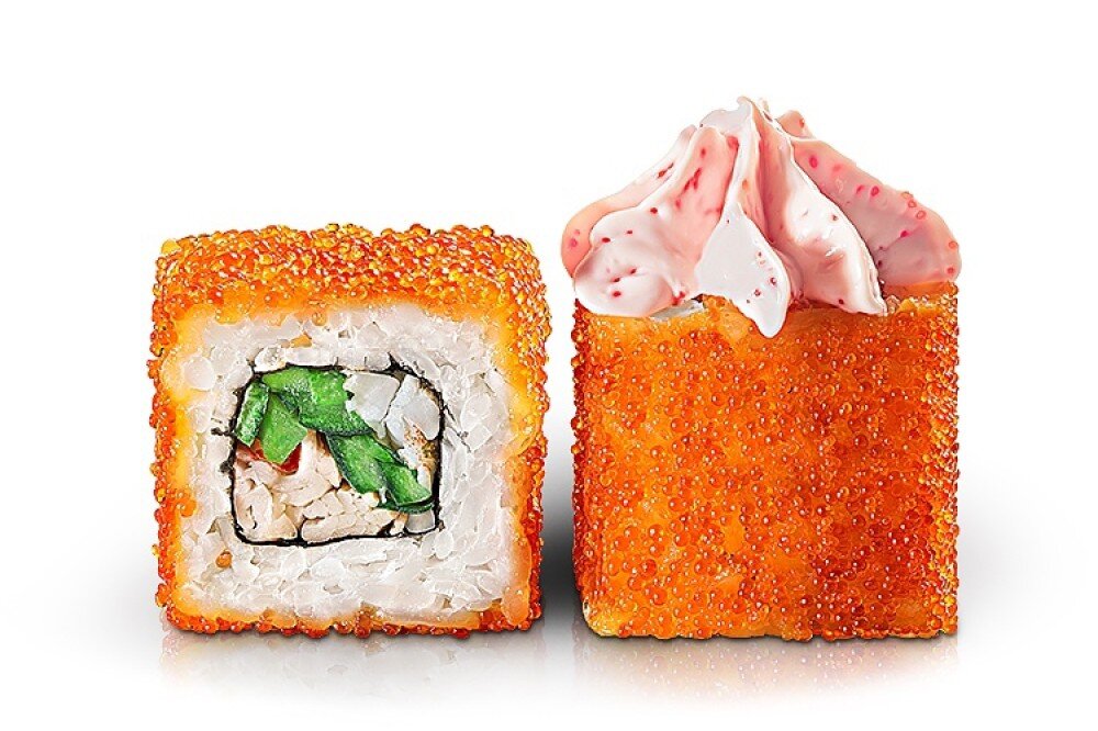 Этот ролл сочетает в себе сказочные вкусы тигровой креветки,снежного краба и свежего огурца. Укутан в икры масаго и шапочка икорного соуса,даря непередаваемое наслаждение.