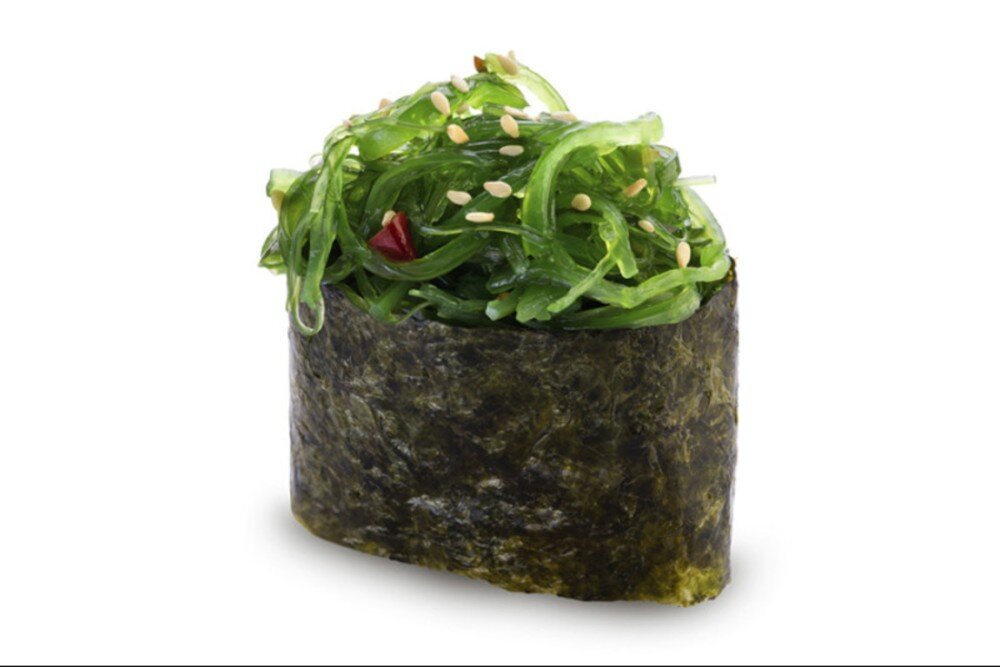 рис, нори, салат чука, кунжут